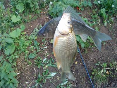 | Доброе время суток господа рыболовы.Был сегодня на рыбалке (30.05.2010г).Открыл Фидерный сезон =)))Ловил на Борисовских прудах с 11:00 до 18:30 на Фидер.Погода конечно же не радовала,был дождь сильный,потом солнце потом дождь мелкий и солнце,в итоге скрывался я от дождя раза 3-4.Клёв был так сказать очень Активный и брал исключительно только Карась,забрасывал от берега метров 20-25,ловил на Опарыша,также использовал Кукурузу и Бойлы,прикорм использовал Сабанеев (Карп,Карась) Фишка (Карась,Лещь).На Бойлы и Кукурузу Было О.П так сказать НИЧЕГО!!! На Опарыша дело шло своим чередом,а т.е очень хорошо,в прямом смысле этого слова.Карась вообще чумовой!!! Клевал даже на один крючок 2 штуки =))),фото прилогается увидете,поверьте не монтаж и не делал я сам так как показано на фото.Подведём итоги:Мной было поймано 2,500 Кг Карасей за 7:30 часов =)))). P.S Фото прилогается =)))